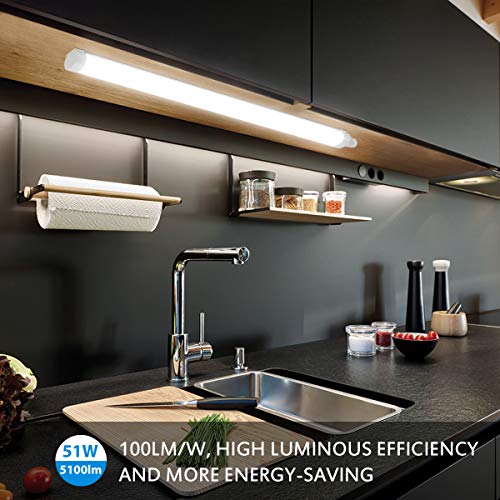 Oeegoo Ledlamp voor vochtige ruimtes, 150 cm, 51 W, 5100 lumen, 100 lumen, voor badkamer, garage, kelder, magazijnhuis…