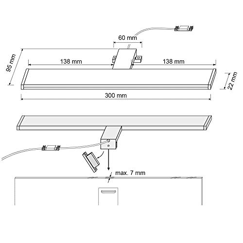 SEBSON LED spiegellamp met geïntegreerde LED module (geen extra lichtbron nodig), om vast te klemmen en vast te drukken.