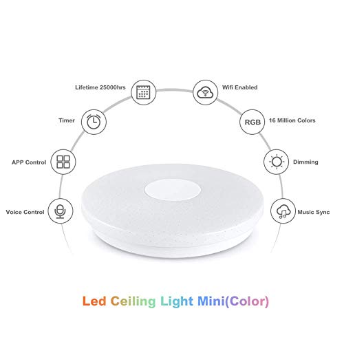 Specificaties: WIFI LED Smart Plafondlamp Woonkamer APP-regeling Kleurtemperatuur RGB Voice Music Play Plafondlamp voor keuken…
