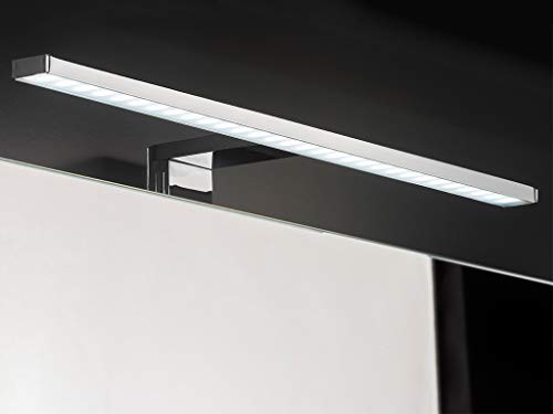 Compleet met led-wandlamp (7 W, koud wit licht), ledlamp – rechtstreeks verbinding met stroom (230 V 50 Hz), IP 44 – voor gebruik in de badkamer – stalen verchroomde behuizing