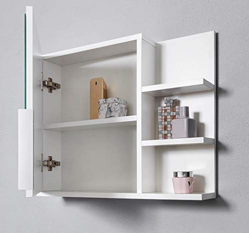 Specificaties: DOMTECH Badkamerspiegelkast met planken en ledverlichting, badkamerspiegel, witte spiegelkast, R