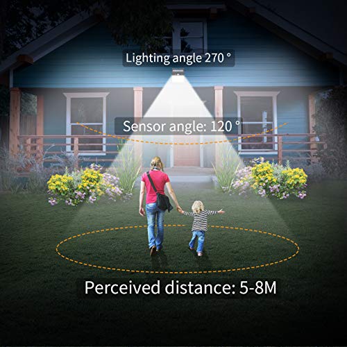 🌞 【3 Intelligent Sensitive Modes】 De 102 LED-zonnelampen met bewegingssensor 270 groothoekontwerp, bestrijken een groter verlichtingsgebied en bieden ultrahoge helderheid voor een breed scala aan gebieden. Gaat automatisch aan als het donker is, gaat overdag uit en laadt automatisch op bij daglicht. 3 modi om uit te kiezen: sensormodus, dimlichtsensormodus en mediumlichtmodus. De bijgewerkte PIR-bewegingssensor kan mensen van 3 tot 5 meter afstand detecteren.