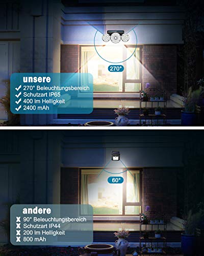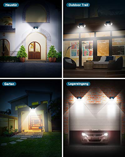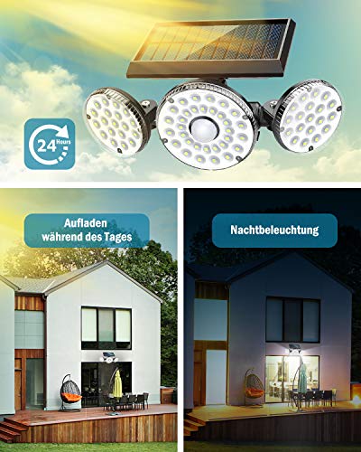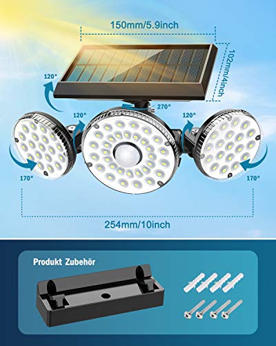 【Superheldere solarlampen】 Met 70 led-zonnelampen, de 3 koppen draaien in meerdere hoeken, detectie en verlichtingshoek van 120 graden om meer verlichtingsgebieden te bedekken. Creëer een lichte en veilige omgeving voor tuinbalkon in het donker.