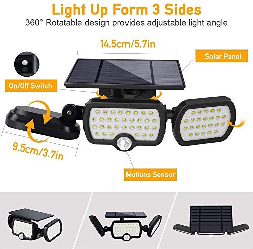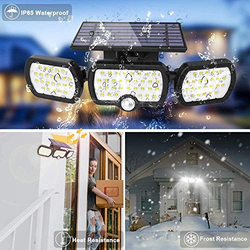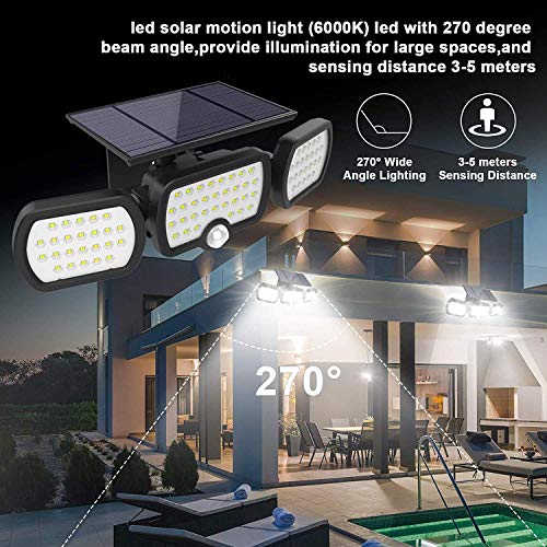 Specificaties: Solar Lights Outdoor 3 Heads, JESLED 80 LED Solar Motion Sensor Beveiligingslamp, IP65 Waterdichte Duurzame Zonne…