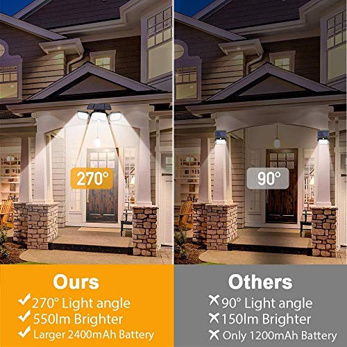 【IP65 Waterproof Security Wall Lights】Made of high quality ABS, and the waterproof coefficient reaches IP65.the led solar lights heat resistant, rust, lightweight and portable, it can withstand everyday use, be it sunny, rainy, hot or frosty. suitable for walls, terraces, gardens, porches, front doors, garages, yards, fences, and is the best choice for outdoor use. Which creates a bright and safe environment for you and your family.