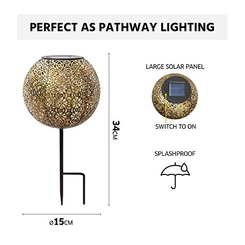 SCHITTEREND LICHTEFFECT – Door het uitgesneden gouden patroon geeft deze verlichting ‘s nachts een schitterend warm lichteffect in de tuin.