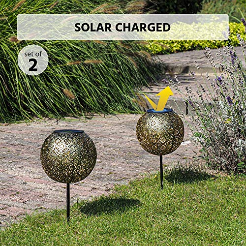 Gadgy Solar Tuinpad Verlichting Buiten | Set van 2 | Led Terras- en Tuinverlichting op Zonne-energie | Tuinprikker Goud…