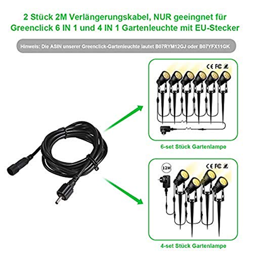 2 stuks verlengkabels, 3,5 x 1,35 mm DC verlengkabel, 2 m kabel/stuk, waterdicht IP65, geschikt voor GreenClick…