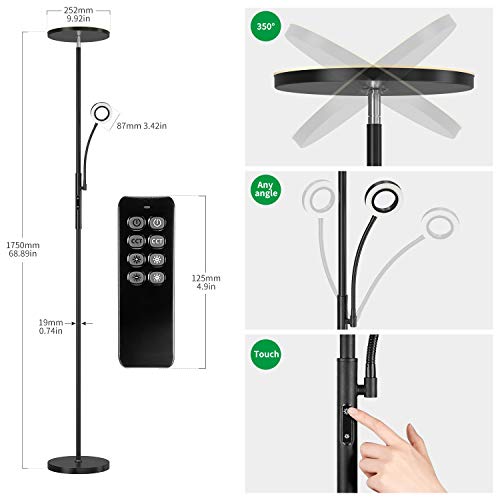 Specificaties: Anten Kaja Staande lamp, led, dimbaar, 30 W, met flexibele 5 W leeslamp, moderne plafondstraler, 2000 lumen, met 4…