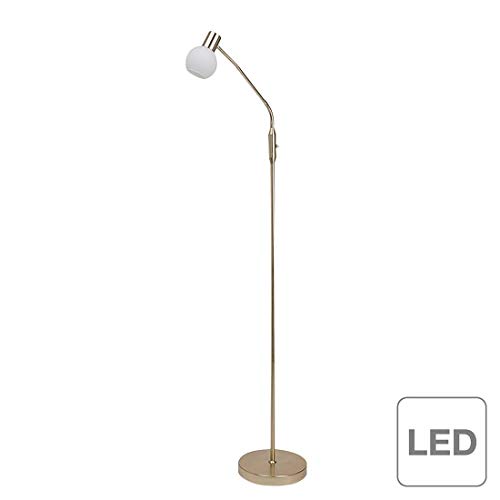 Specificaties: BRILLIANT lamp Philo LED vloerlamp 1-licht geborsteld messing/wit | 1x LED-D45, E14, 4W LED-droplamp inbegrepen, (450lm, 2700K) | Schaal A ++ tot E | Met tuimelschakelaar