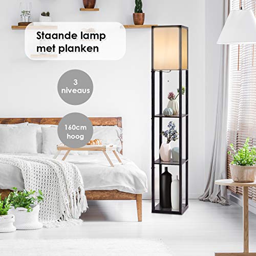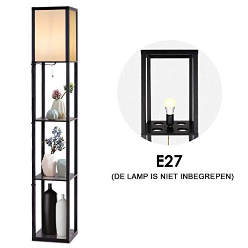 Specificaties: COSTWAY Staande lamp met houten legplanken, 2-in-1 vloerlamp met 3-laags planken, binnenverlichting met E27-fitting tot…