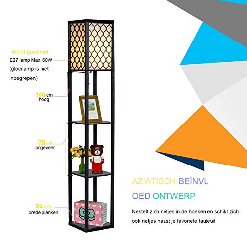 Specificaties: COSTWAY Staande lamp met houten plank, 3-laagse staande lampen, 160 cm hoog vloerlamp voor woonkamer en slaapkamer, 2-in…