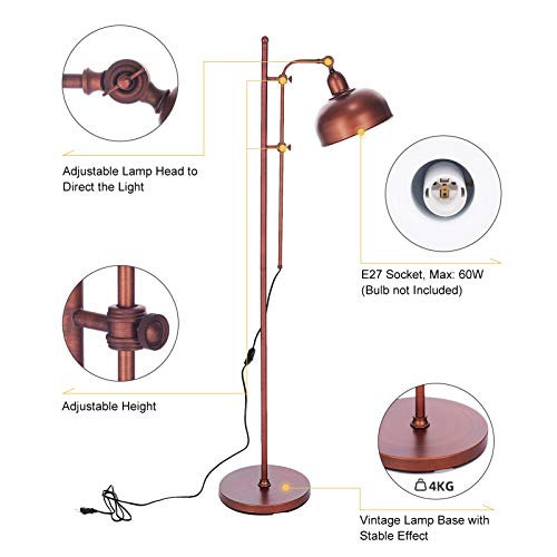 Vintage design: wij hebben de teugen van het moderne minimalisme gecombineerd met een rustieke en vintage appeal om deze unieke industriële lamp te creëren. De staande lamp weerspiegelt vele designtrends, waaronder vintage industrie, retro, boerderij en moderne decoratie uit het midden van de eeuw
