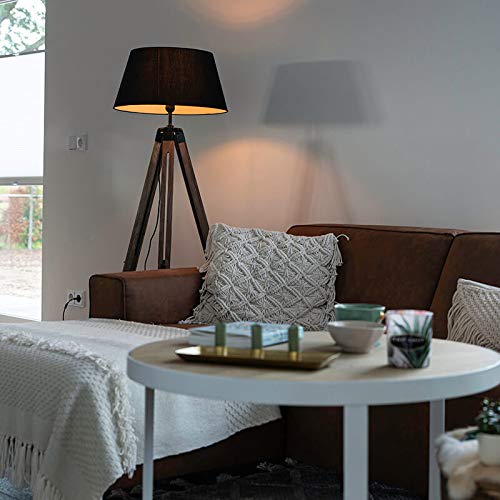 Specificaties: QAZQA – Industrieel | Industrie vloerlamp op houten driepoot met zwarte kap – Rio | Woonkamer | Slaapkamer | Keuken…