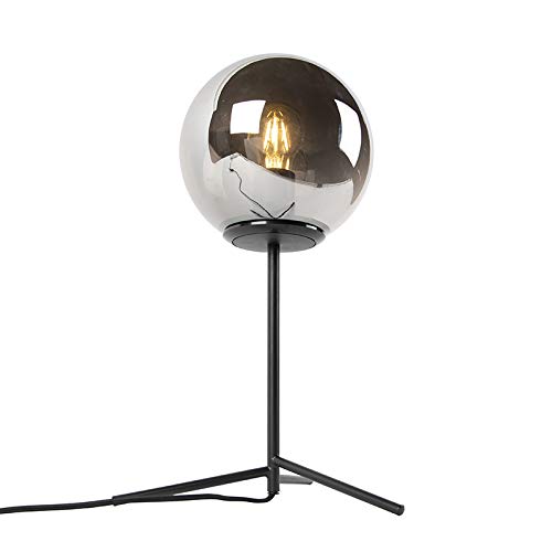 Specificaties: QAZQA – Art Deco Art deco tafellamp zwart met smoke glas 45,5 cm – Pallon | Woonkamer | Slaapkamer | Keuken – Glas Bol…