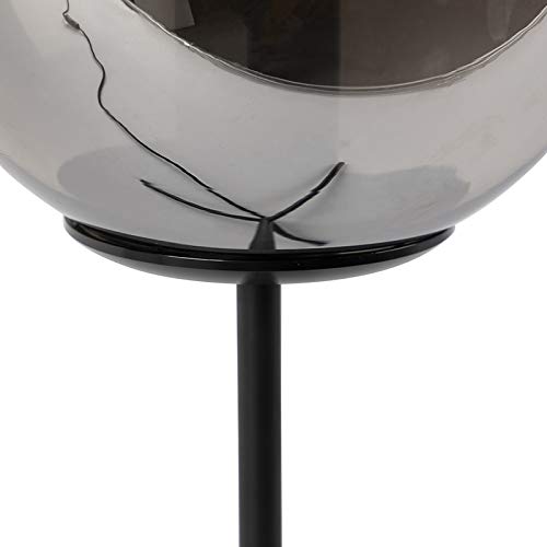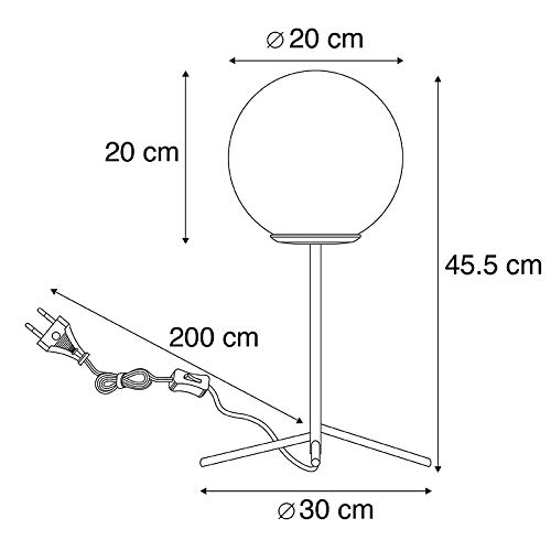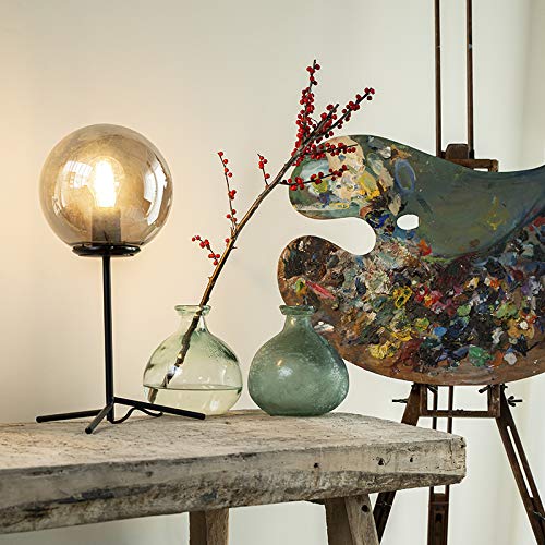 Hij heeft een hoogte van 45,5 cm. De voet heeft een diameter van 30 cm. De glazen bol heeft een diameter van 20 cm; door de smoke glas finish heeft hij een speciaal effect. Kies voor een decoratieve lichtbron omdat deze zichtbaar is. Deze lichtbron moet passend zijn in een E27 fitting (max. 40 Watt). De lamp is tevens dimbaar met externe dimmer om in de avond een gezellige sfeer te creëren in huis. Een echte stoere, retro eyecatcher in je slaapkamer of woonkamer.