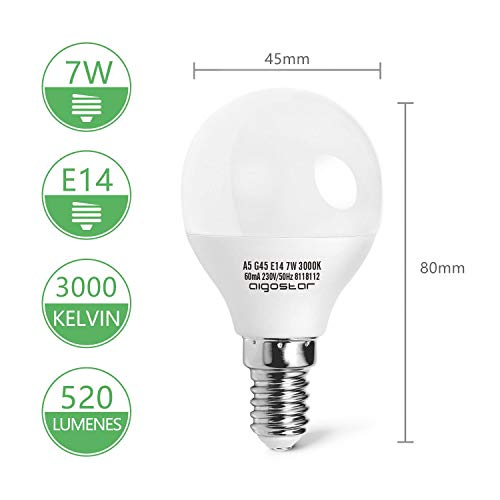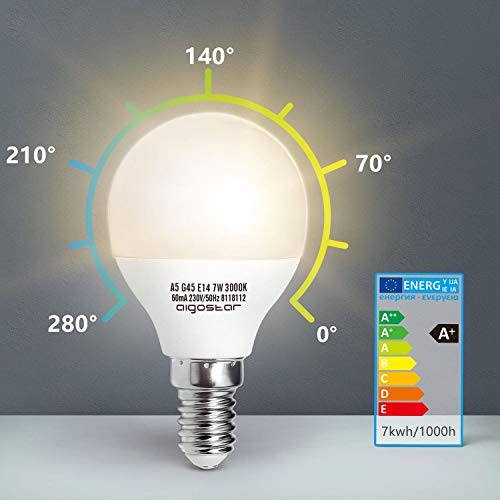 Specificaties: Aigostar Ledlampen E14 7W G45, warm wit 3000K, 520 lm, stralingshoek 230 graden, decoratieve verlichting, niet dimbare…