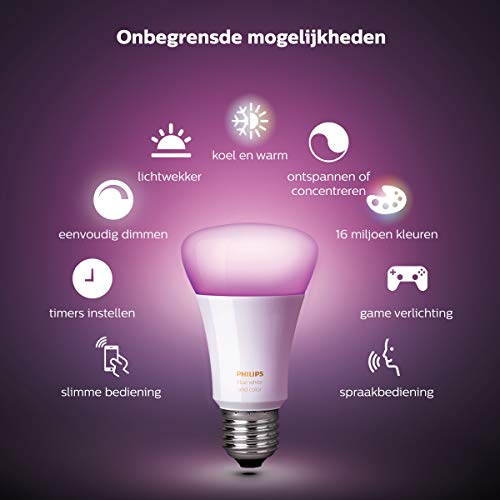 Optimaal geschikt voor je lampen met E27-fitting. Geoptimaliseerde en rijkere kleuren van de 5e generatie Philips Hue lampen (2x Hue LED-lampen incl. Bridge)