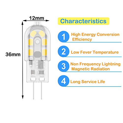 Specificaties: G4 LED-lampen, 2W Vervang 10W-25W halogeenlampen, flikkervrij, warm wit 3000K, AC / DC 12V, niet-dimbaar, spaarlampen…