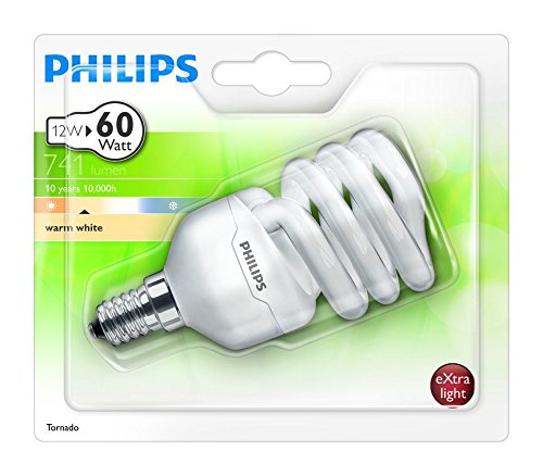 Philips Tornado spaarlamp spiraal 12 W (komt overeen met 60 W), kleine fitting E14, warm wit