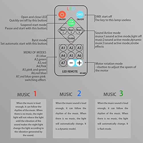 ★Verscheidenheid van kleuren en Voice Control: Muziek tempo veranderingen, Muziek 1 flash sound control, Muziek 2 dynamische geluidsregeling, Muziek 3 strobe geluid contril swithch tussen verschillende effecten. Met afstandsbediening. Het is gemakkelijk om nummers te selecteren, het muziekvolume aan te passen.