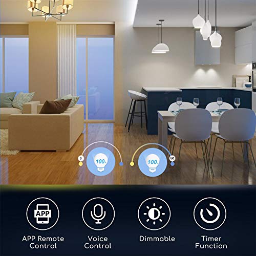 【Energiebesparing en lange levensduur】Deze 5W LED-bulb biedt u briljant licht met 800 lumen en een hoge lichtopbrengst, die de traditionele 60W gloeilamp vervangt. Bespaar meer dan 85% energie, waardoor er meer geld wordt bespaart. Deze wifi-bulb gaat meer dan 25.000 uur mee.