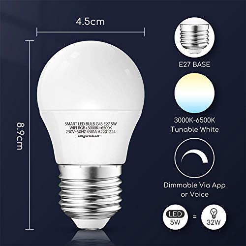 Specificaties: Aigostar Smart WiFi-bulb G45 E27-fitting, werkt met Alexa en Google Home, van kleur te veranderen, 5W LED lampen…