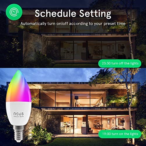 📱 Afstandsbediening overal 📱 “NOUS”-app maakt wat de Smart Home gloeilampen kunnen doen (aan/uit/wijzigen van kleur en helderheid). Via de app heb je alle kleuren om uit te kiezen. Je kunt je favoriete kleuren individueel vormgeven door meerdere kleuren te mengen en voor later gebruik te bewaren. Geen hub nodig en dankzij de timer kun je je verlichtingssysteem intelligent beheren.