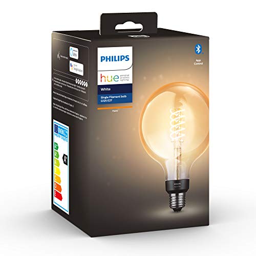Philips Hue Witte reuzenbollamp met E27 LED-filament, vintage design, dimbaar, warm wit licht, bedienbaar via app…