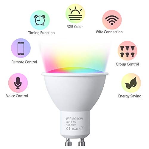 Specificaties: Vicloon GU10 Wi-Fi-lampen, 2 Stuks 5W GU10 LED Smart Lamp, Alexa Bulb RGB Veelkleurige GU10 Dimbaar, Compatibel met…