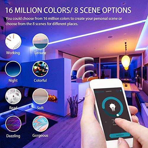🟦 [16 Miljoen Kleurkeuzes] – Meer dan 16 miljoen kleuren (daglicht, warm wit en RGB-kleur), helderheidsaanpassing van 10% -100%. De kleur en helderheid van het aangepaste licht kunnen worden afgestemd op uw verschillende behoeften, het kan worden bestuurd door APP en geluid.