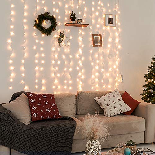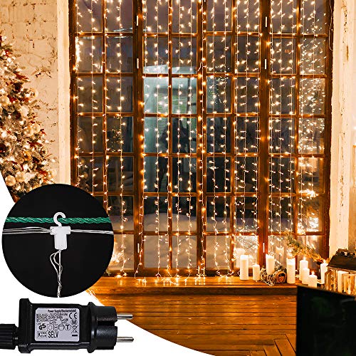 GORDIJNVERLICHTING: Een set van 304 warmwitte LED-kerstgordijnverlichting, netvoeding.