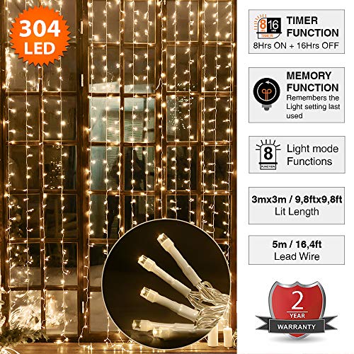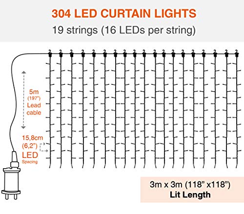 ANSIO lichtgordijn, 3mx3m Gordijn Licht 304 LED Venster Fairy String Lights, 8 Modi Voor Kerstmis, Feest, Bruiloft…