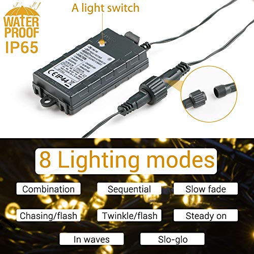 【 8 knipperende modi Led Fairy Lights】 8 modi van verlichting en knipperen beschikbaar, omvatten combinatie, in golven, sequentieel, slo-glo, achtervolgen/flash, slow fade, twinkle/flash en stabiel aan. U kunt de modus met één knop bedienen. De controller is ontworpen om de laatste instelling te onthouden na het uitschakelen van de stroom. U hoeft het licht niet opnieuw in te stellen.