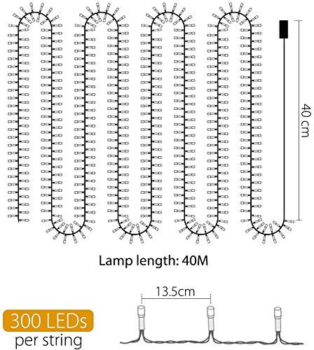 【Perfect decoratief gereedschap】Ontworpen met 300 superheldere ledlampen op 40M hoogwaardige koperdraad, die buigbaar is, zodat je de kerstboomlampen in elke gewenste vorm kunt vormen. Perfect voor binnen en buiten, Kerstmis, feest, Valentijnsdag, bruiloft, huis, raam, badkamer, festival, vakantie, shows, restaurant, hotel, commercieel gebouw, winkelcentrum etc.