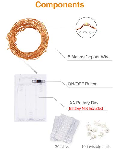 Specificaties: 50 LED Fotoclip Lichtslingers, Kolpop 5M Fotopin Fairy Lights Batterij met Clips Indoor Cooper Draad Hangende String…