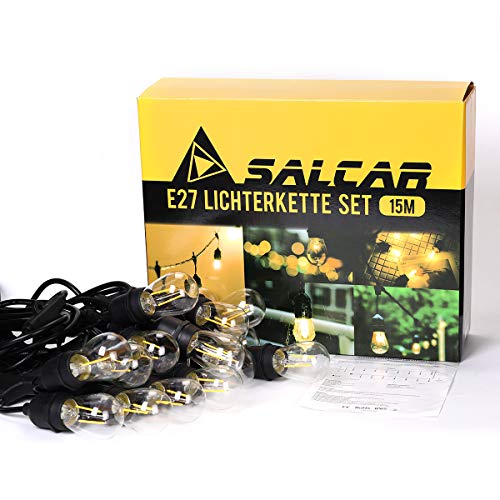 Salcar Led-lichtsnoer voor buiten, 15 m, 15 x E27-leds, IP65, waterdicht, decoratieve lamp voor huisdecoratie, feest…