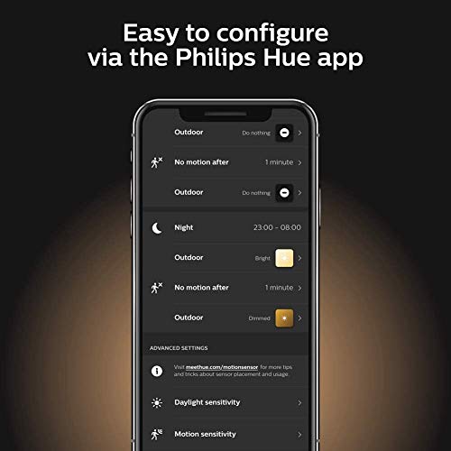 Eenvoudig te installeren en volledig draadloos – Je hebt er dus geen elektricien voor nodig, je kunt hem zelf in een paar minuten monteren. Haal de sensor uit de verpakking, stel hem in via de Philips Hue app en plaats hem waar je maar wilt