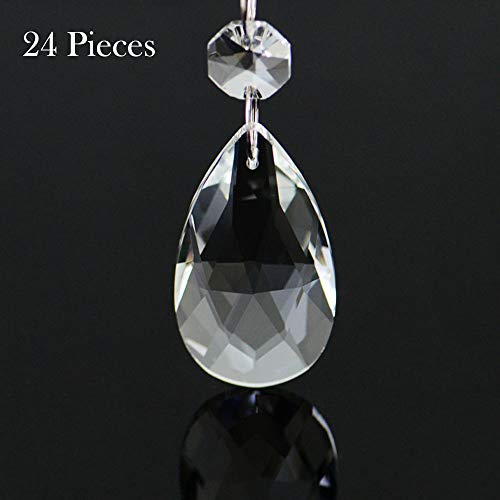 JaneYi (24 Pack) 38mm Teardrop Crystal Pendant Clear Crystal Glass Chandelier Prism Sun Catcher Parts Hanging Drops…