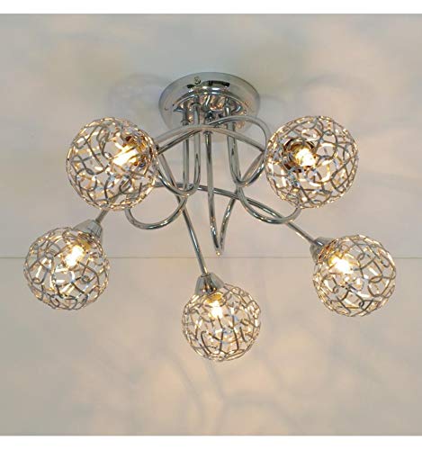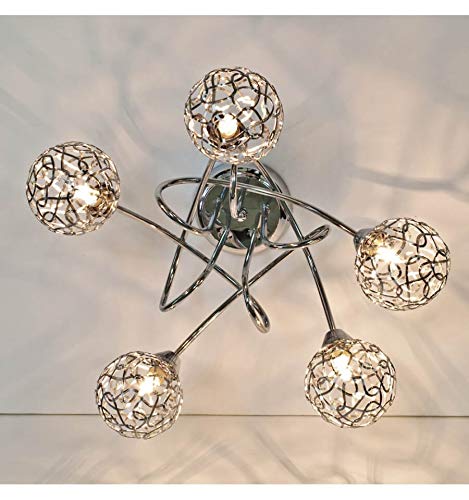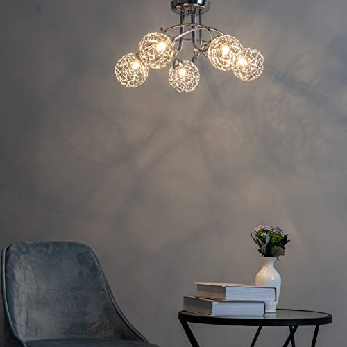 KosiLight Plafondlamp, 5 bolletjes, afhyse, zilver/chroom, metaal en aluminium, IP20, compatibel met A