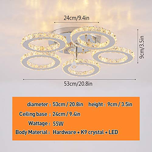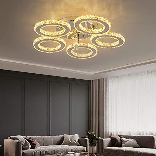 De leds en kristallen bieden een stijlvol design, een moderne vorm met 3 cirkelringen, net als een bloem aan het plafond, ideaal voor binnen, verlicht en vormgeert elke ruimte en creëert een comfortabele en heldere omgeving.