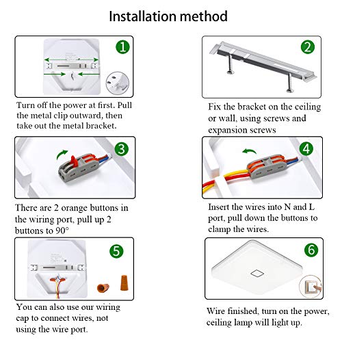 Opmerking: deze plafondlamp heeft een speciale structuur en heeft geen aarding nodig. Bij de installatie verwijder je gewoon de houder aan de achterkant van de lamp. De plafondlamp demonteren.