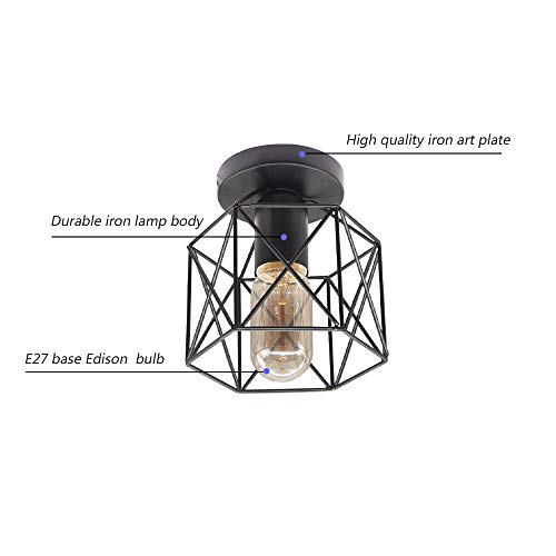Specificaties: Vintage led plafondlamp zwart ijzeren kooi opbouw licht, voor keuken slaapkamer balkon bar edison lamp warm licht…