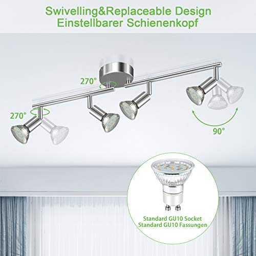 Praktische verlichting: de mast van de plafondlamp en de GU10 LED-punten kunnen onafhankelijk van elkaar worden gedraaid om de hoek naar wens aan te passen
