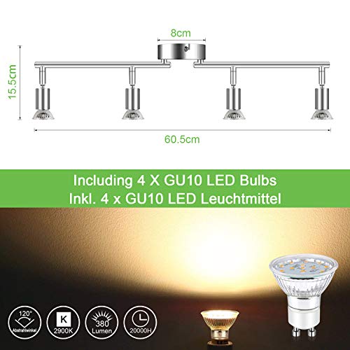 Unicozin LED plafondlamp, 4 lampen LED plafondspot draaibaar chroom, incl. 4 x 3.5W GU10 LED-lampen, 380LM, warm wit…
