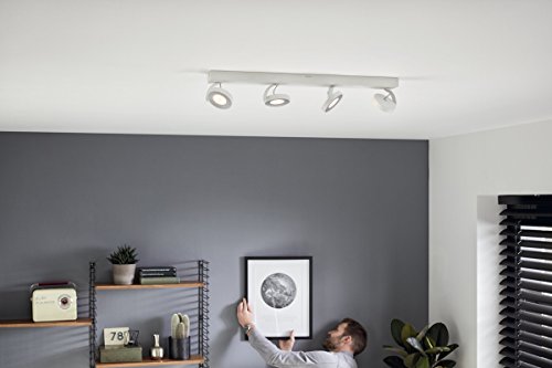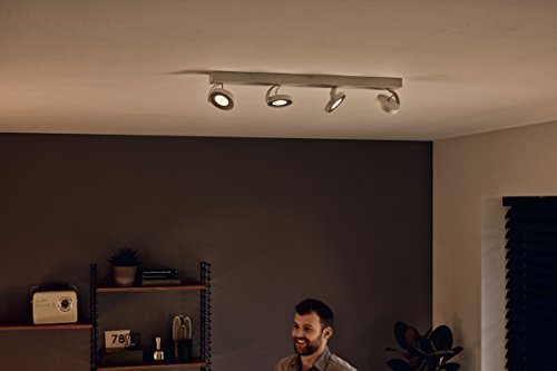 Deze Philips Clockwork metalen opbouwspot in een witte kleur heeft maar liefst 4 spots. Draai en kantel de spot en laat zo het licht schijnen waar u dat wilt. Ook kunt u de sfeer in elke ruimte aanpassen door het licht van de ingebouwde WarmGlow LED-lampen te dimmen. Hoe meer u dimt, hoe warmer het licht en hoe knusser de ruimte. Dat kan overigens met de meeste dimmers. Verder monteert u de lamp eenvoudig dankzij het Click!Fix systeem.