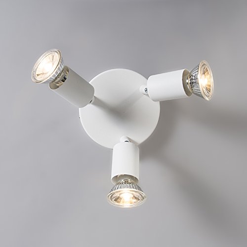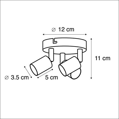 De lamp heeft een hoogte van 11 cm en een diameter van 20 cm. De montageplaat heeft een diameter van 12 cm. Je maakt de lamp af met drie lichtbronnen met een fitting van GU10 (ieder max. 35 Watt). Deze opbouwspot is dimbaar met een externe dimmer (dimmer niet inbegrepen).