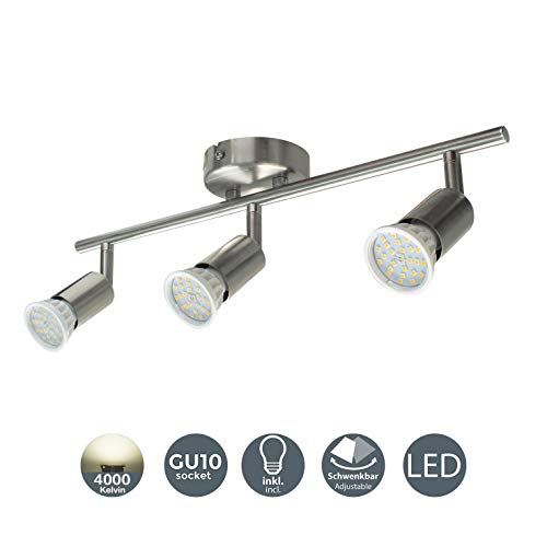 Specificaties: Abishion LED plafondlamp draaibaar incl. 3xGU10 LED-lampen, niet dimbaar, 5.5W 600LM, natuurlijk wit 4000K, plafondspot…