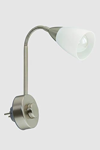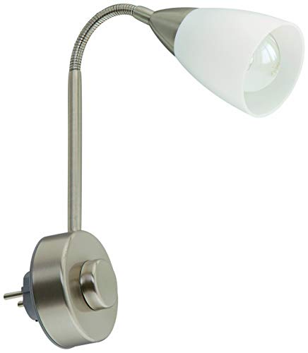 AGL-leeslamp, stekker lamp mat nikkel, 1 x E14, 25 watt, flexibele arm, spot draai- en zwenkbaar