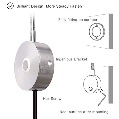 FLEXIBELE ZWANENHALS: leeslampjes met een rotatiehoek van 360 graden en een superlange hals die gemakkelijk naar de gewenste verlichtingshoek kan worden verplaatst. Perfect geschikt voor verschillende zithoudingen of lig houding op het bed.